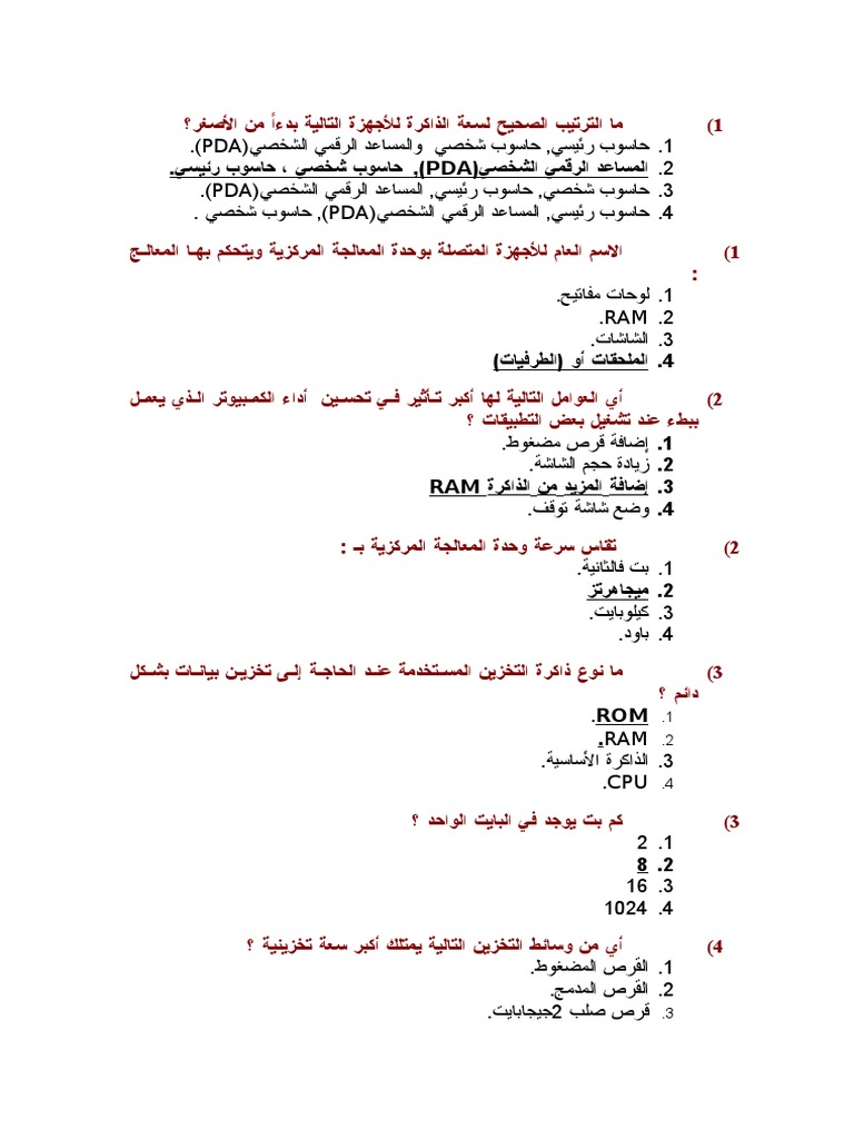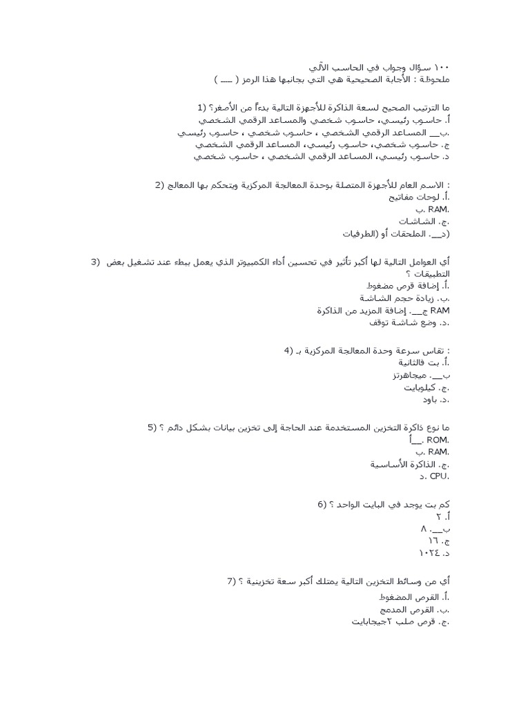 اسئلة واجوبة عن الحاسب الالي