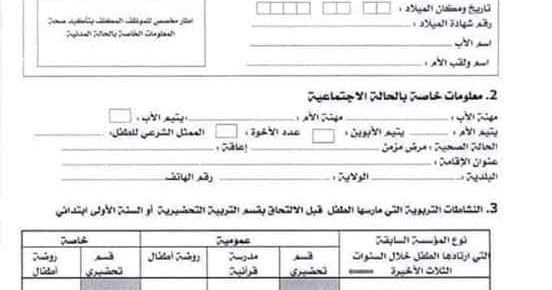 استمارة تسجيل اول ابتدائي