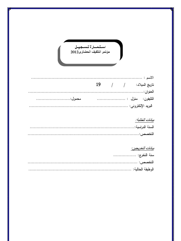 استمارة تسجيل طالب Doc